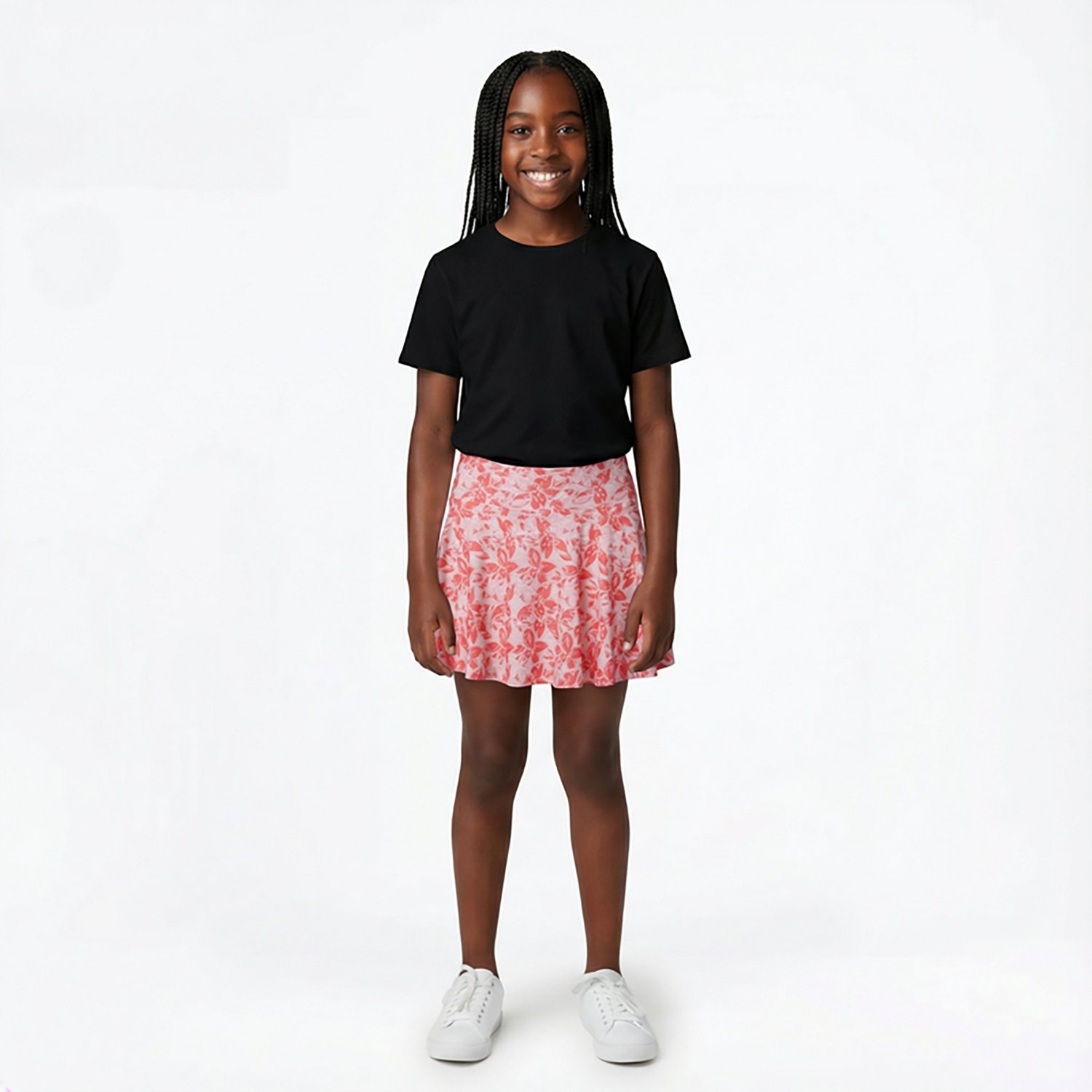 Features and Benefits Made of 88% polyester and 12% spandex Moisture wicking technology keeps you dry UPF protected to keep you out in the sun longer High-rise elasticized waistband allows adjustability Built-in shorts with a side tennis ball pocket All over print shows off your personal style Relaxed fit through the hip and thigh Specifications Clothing Type: Athletic Skirts Product Type: Skorts Skirt Length: Short Style: Tennis Skirts Activity: Tennis Material: Polyester/Spandex Blend Features: Moisture Wicking,Sun Protection,Stretch Rise: High Rise What's in the Box BCG Girls' Tennis Swing Printed Skort