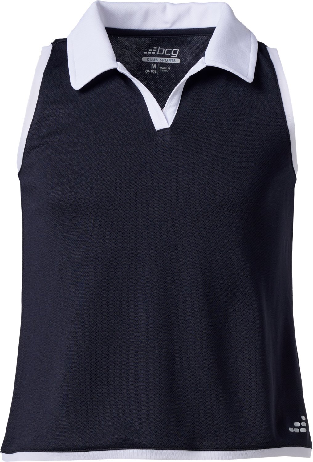 She'll serve style in the BCG Girls' Tennis Swing Sleeveless Polo Shirt. Made of lightweight polyester, this moisture-wicking polo has antimicrobial properties to help her stay comfortable all day. The UPF 30 sun protection shields her skin from UV rays, and the mesh piecing on the arms adds flare.