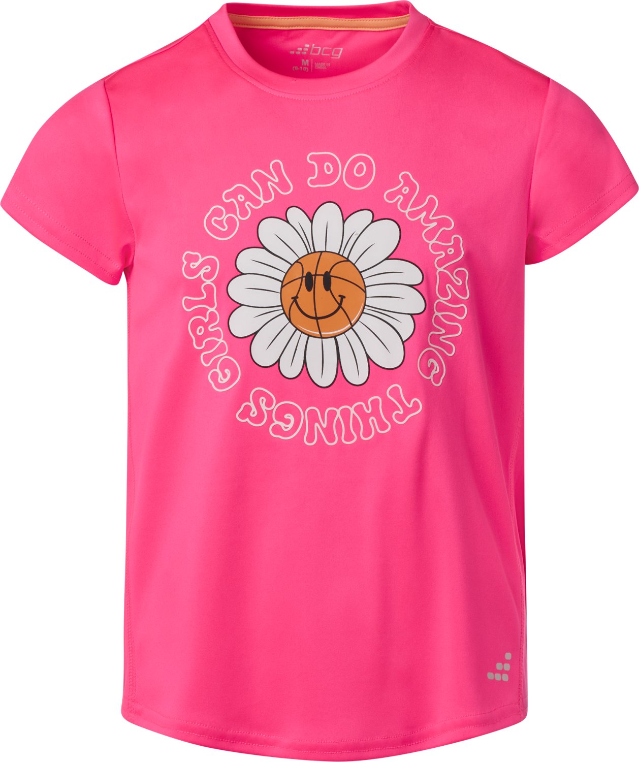 Look your best while you work out when wearing the BCG Girls' Training Turbo Amazing Bball T-shirt. This T-shirt is made of 100% recycled polyester knit fabric with moisture-wicking properties to help keep you cool, dry and comfortable, and the performance fit is designed for movement.