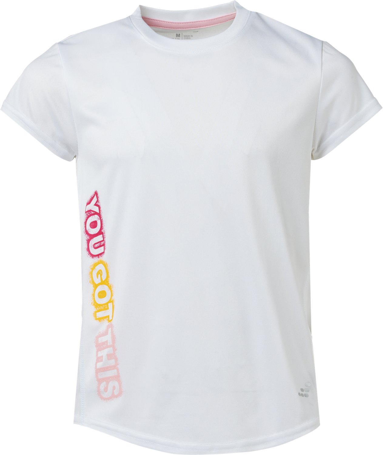 Look your best in BCG Girls' Training Turbo Got This T-shirt. It is made of 100% recycled polyester. The moisture wicking technology keeps you dry, and its crew neckline adds to the casual style. The graphic on the front shows off your unique style.