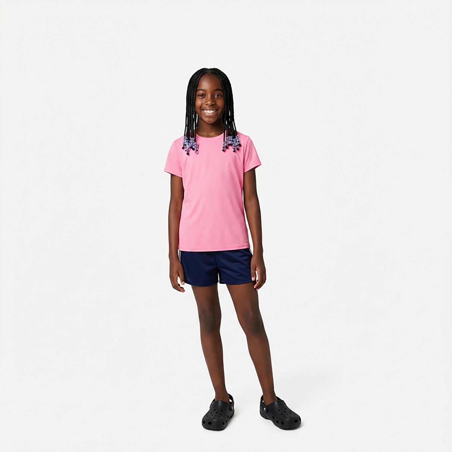 Get ready to play with the BCG Girls' Turbo T-shirt. The polyester suede interlock fabric provides a comfortable feel, while the moisture wicking technology helps keep you cool and dry.