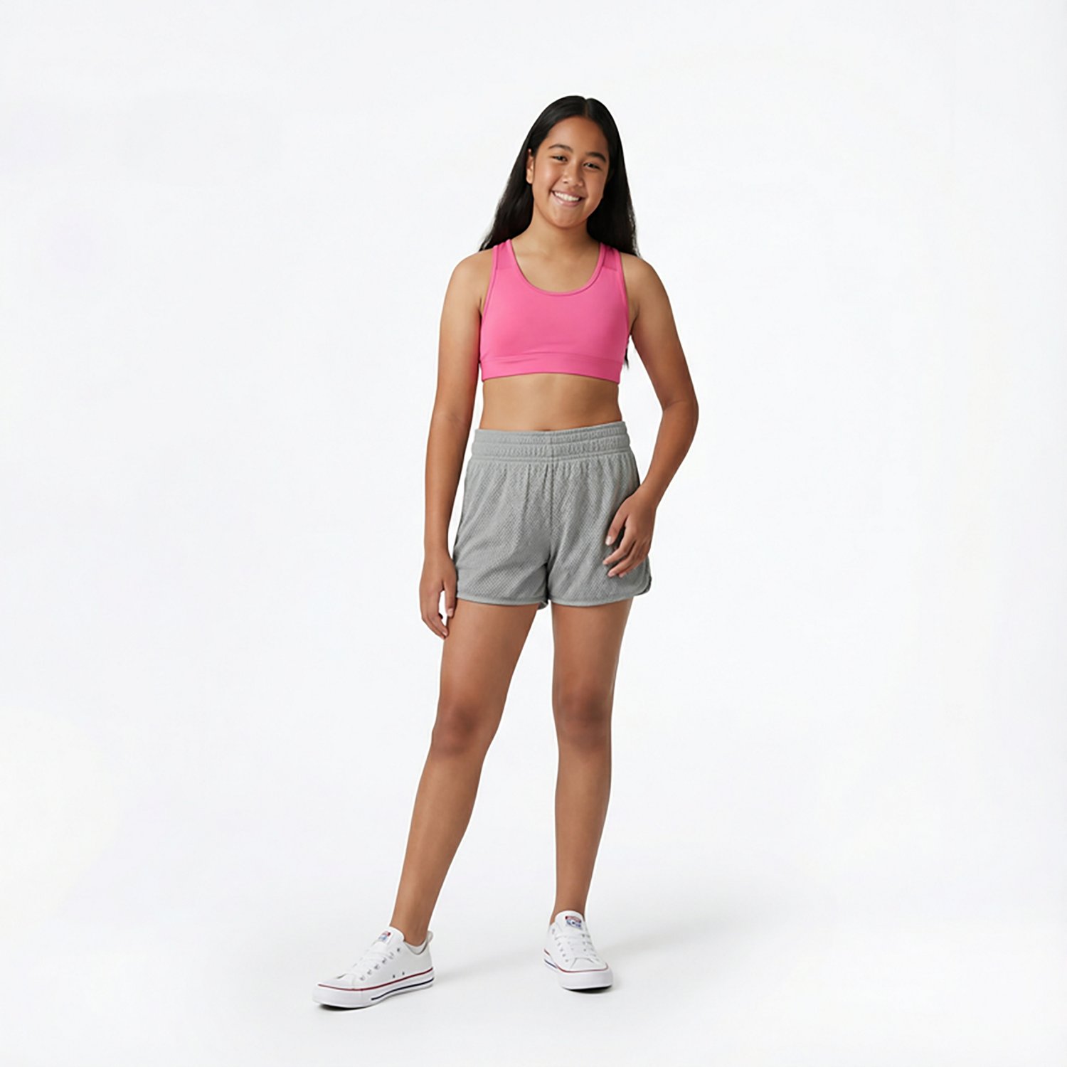 Train hard with the BCG Girls' Volley Low Support Sports Bra. The polyester and spandex material provides a comfortable feel, while the moisture wicking technology helps keep you cool and dry. The crossback and cutout details add a stylish touch.