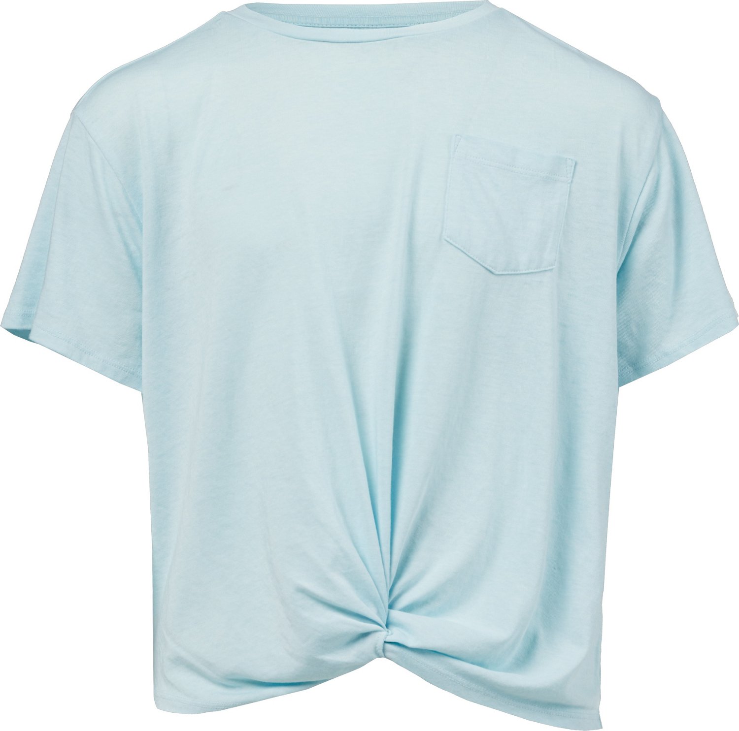 Step out feeling confident in the BCG Girls' Wrap Short Sleeve T-shirt. The 60% cotton and 40% polyester jersey knit construction offers a soft feel all day, and the front pocket provides room to conceal small accessories. The wrap front at center bottom hem provides a secure feel.