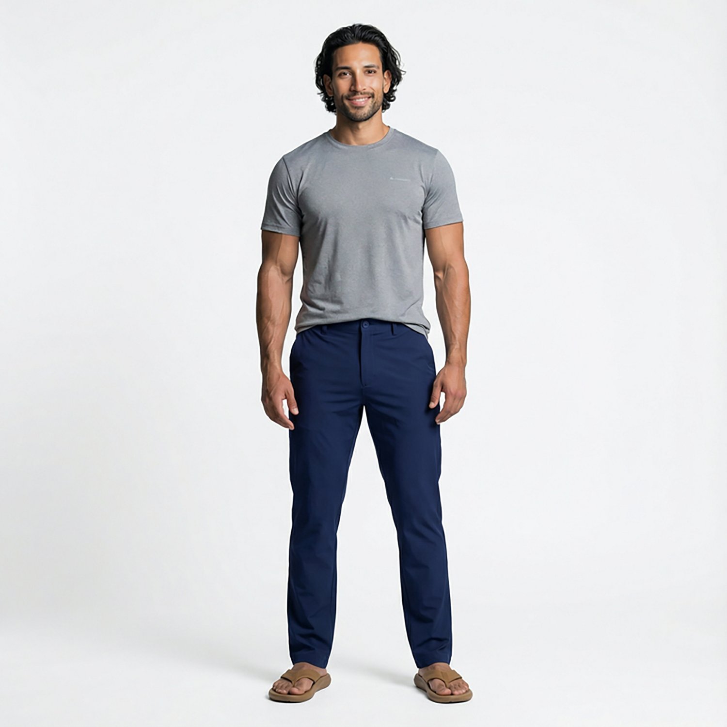 Tee off with the BCG Men's Golf Essential Pants. The recycled polyester and spandex material provides a comfortable feel, while the moisture-wicking technology helps keep you dry. The UPF protectant provides protection while out in the sun.