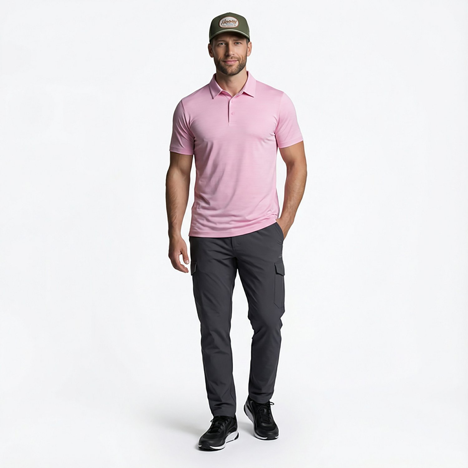 Follow through on your swing with the BCG Men's Golf Heather Polo Shirt. The poly heather fabric provides a comfortable feel, while the moisture wicking technology helps keep you cool and dry.