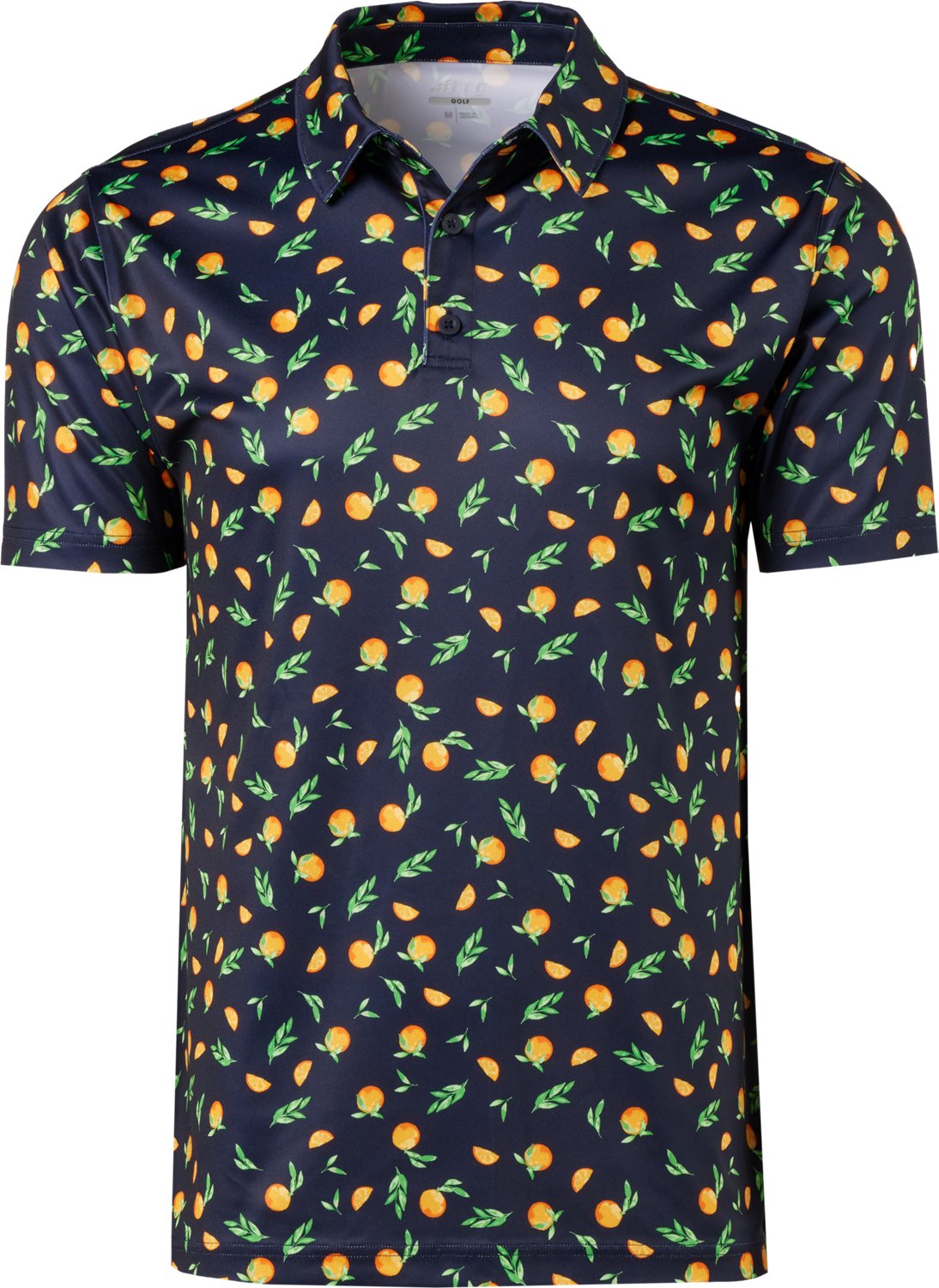 Grab your clubs and stand out on the greens in the BCG Men's Golf Orange Polo Shirt. The moisture-wicking technology helps you stay feeling cool and dry in the heat, and the 100% polyester delivers comfort and resilience. A orange all-over print highlights an eye-catching appearance, and the three-button placket adds a sleek touch.