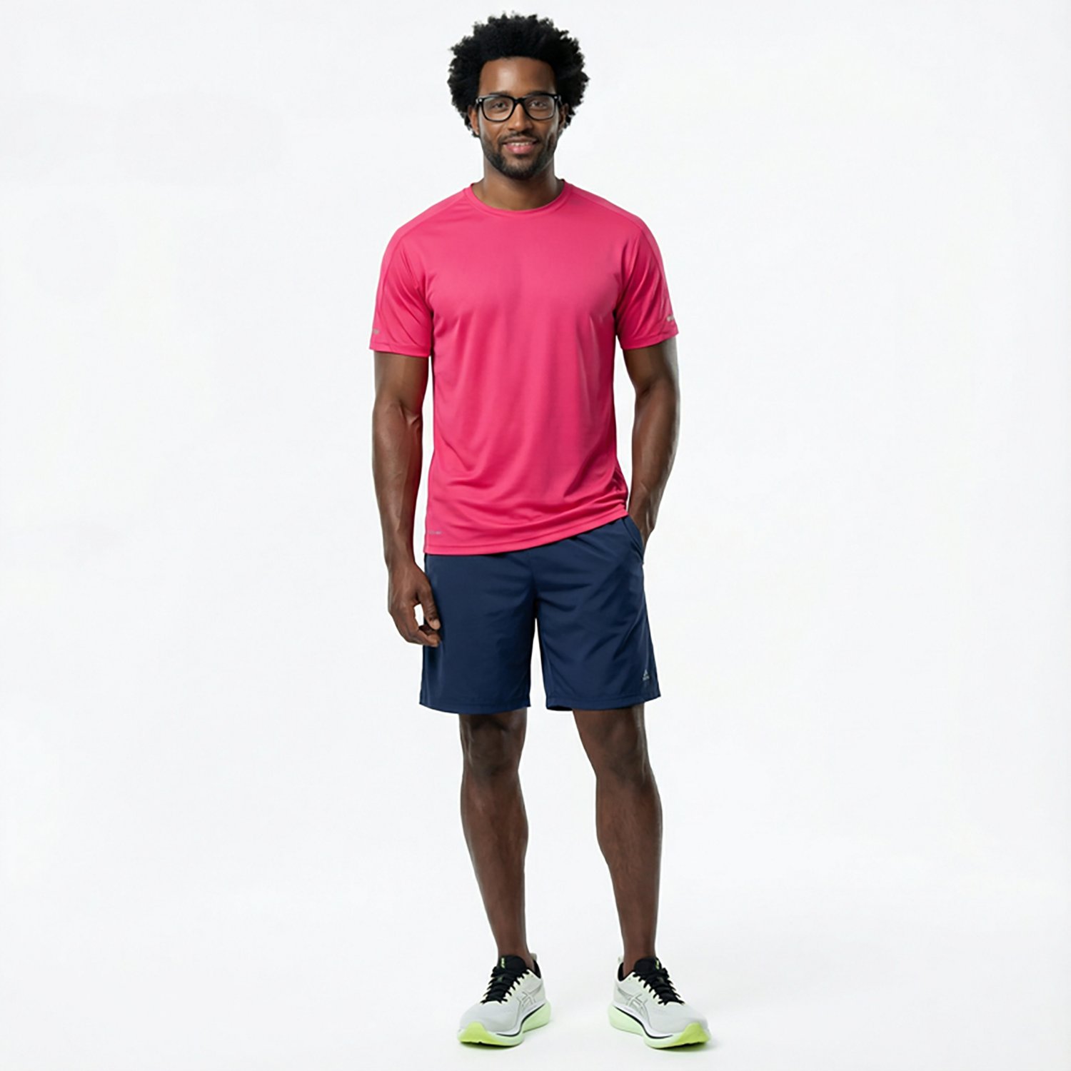 The BCG Men's Run Grid Mesh Short Sleeve T-shirt is a men's running short sleeve tee from BCG designed for active performance. This athletic shirt features a Grid Mesh material, offering a lightweight feel. Its moisture-wicking properties help manage sweat. The quick-drying fabric supports comfort during your runs. A classic crew neck completes this men's short sleeve top.