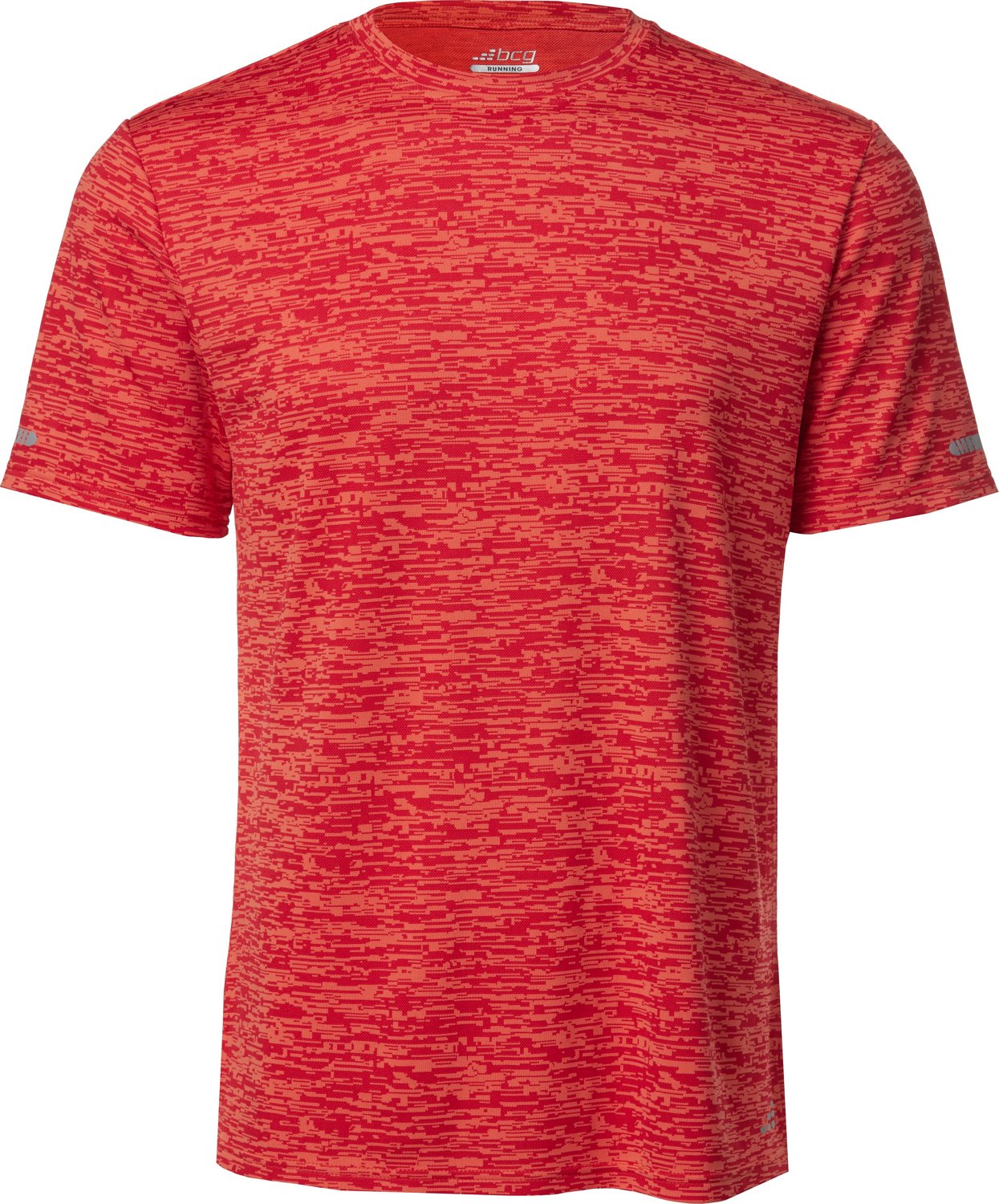 Even as the sun sets, you can go for a run when you wear the BCG Men's Run Race Running T-shirt. The reflective details boost your visibility in low-light situations, and the 100% polyester fabric feels soft. The moisture-wicking technology keeps you dry, and the slit hem delivers breathability.