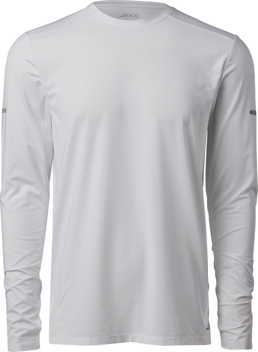 Run in comfort in the BCG Men's Run Race UV Long Sleeve T-shirt. It's made from 88% polyester and 12% spandex for durability with moisture wicking technology to keep you dry. It also has a UPF rating of 50 to protect you from harmful UV rays.
