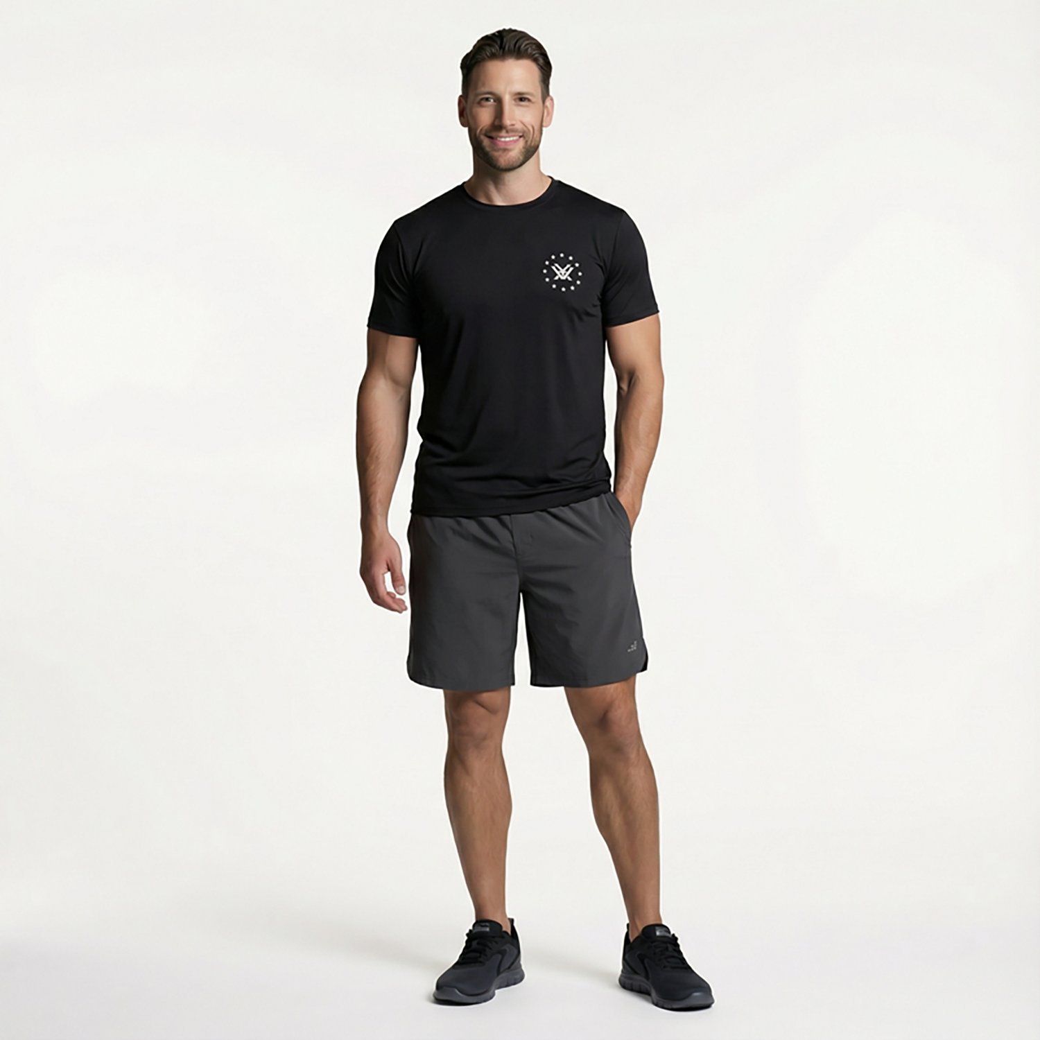 Go for a run in the BCG Men's Run Shorts 7 in. The polyester and spandex material provides a comfortable feel, while the moisture-wicking technology helps keep you cool and dry. The reflective design promotes visibility.