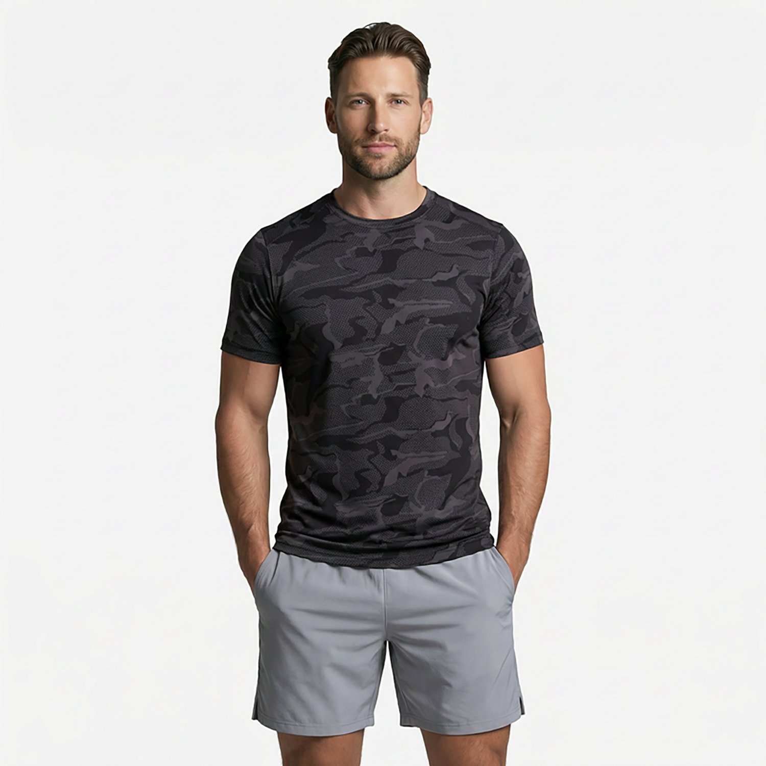 Conquer your training goals with the BCG Men's Train Jacquard T-shirt. The polyester jacquard material provides a comfortable feel, while the moisture wicking technology helps keep you cool and dry.
