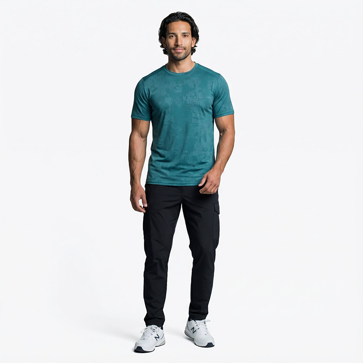 Gear up for the day when you put on the BCG Men's Turbo Jacquard T-shirt. The 100% polyester knit construction stands up to wear and tear, while the moisture-wicking technology helps keep you cool and dry.