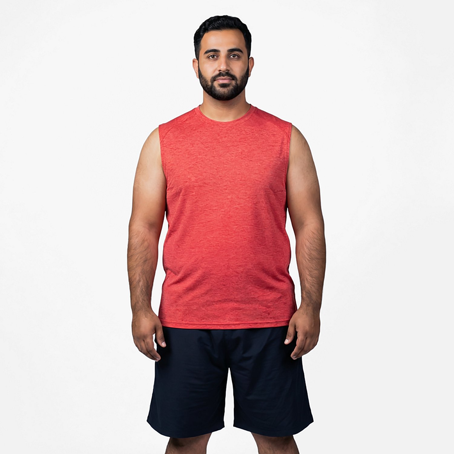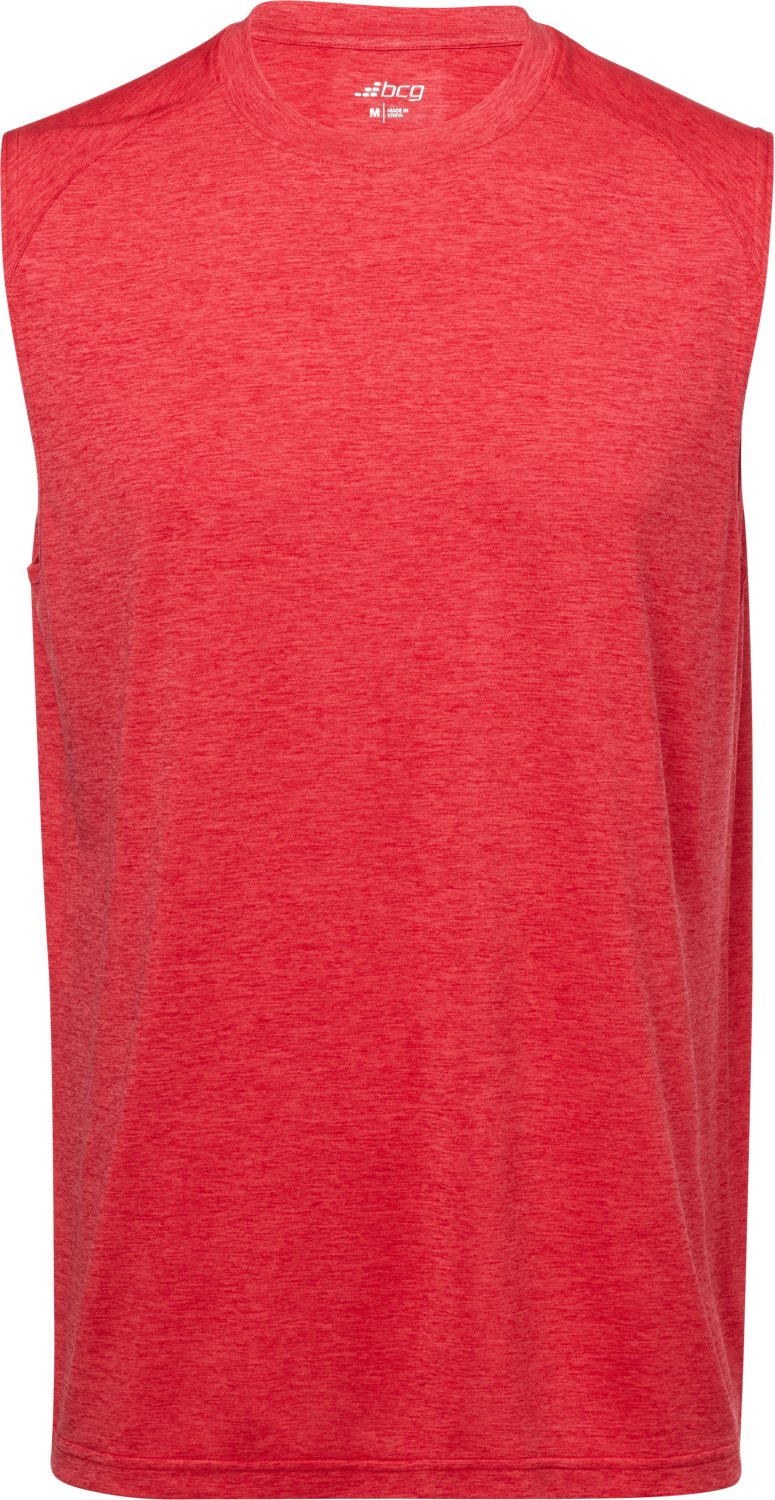 Look your best in the BCG Men's Turbo Melange Muscle Tank Top. It is made of 100% recycled polyester. The moisture-wicking technology keeps you dry, and its sleeveless design shows off your hard-earned muscles. The crew neckline offers a casual style.
