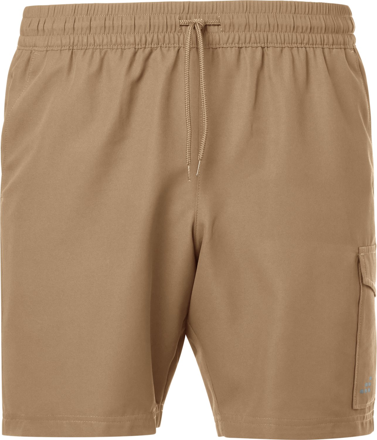 Look your best in the BCG Men's Weekender 3.0 Shorts 8 in. They are made of 100% polyester. Its water repellent fabric keeps you dry, and their elastic drawcord allows adjustability. The cargo styled pockets provide large spaces for your items.