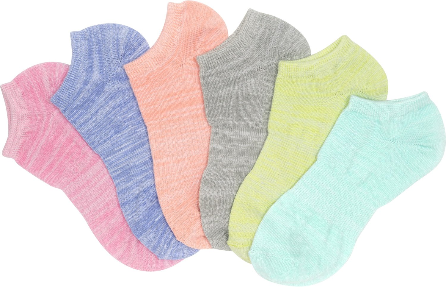 Show off your fun side with the BCG Space Dye No-Show Socks 6-Pack. The polyester blend provides a comfortable feel, while the unique graphics offer a stylish look.
