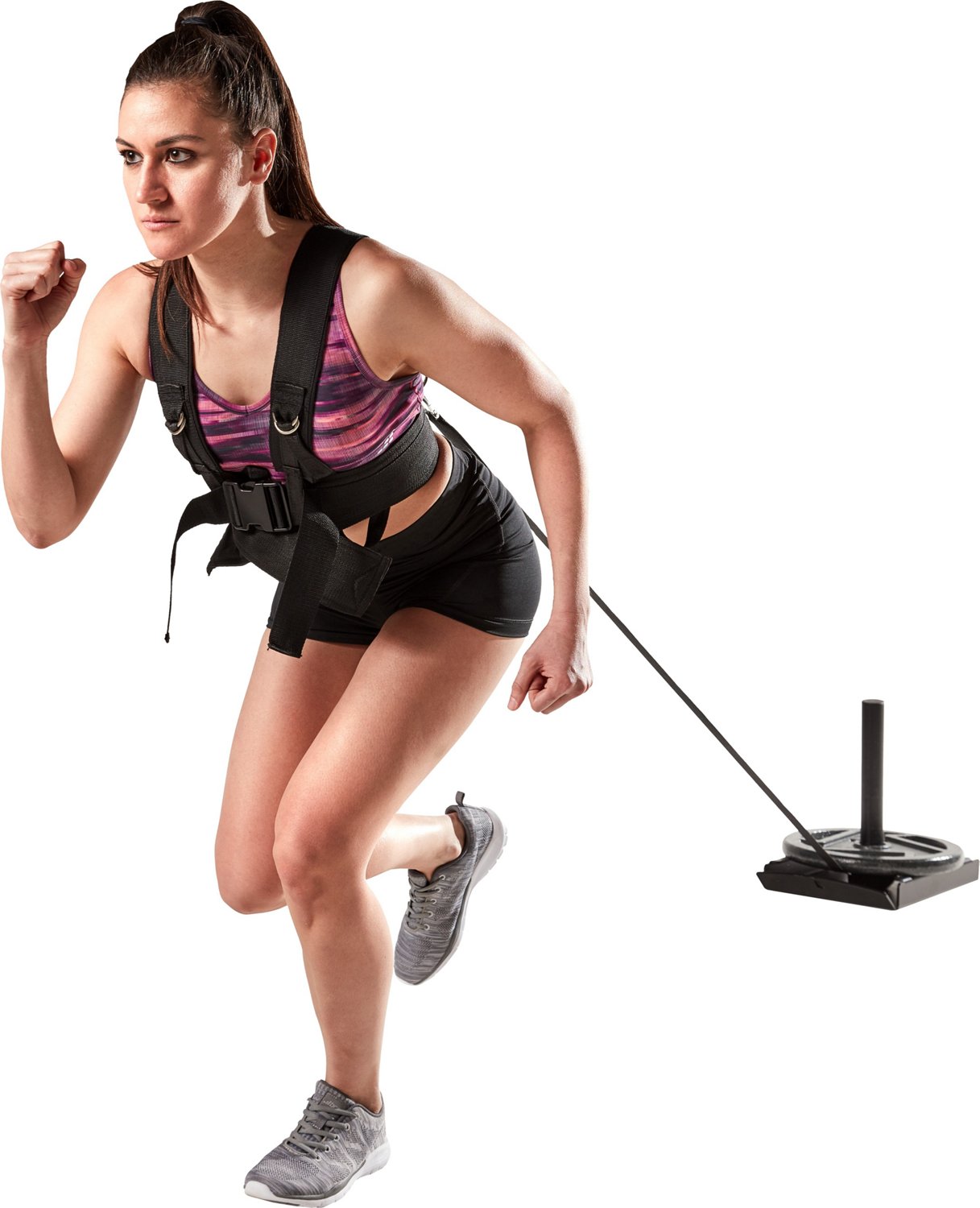 Train like an olympian with the BCG Speed Sled. The sled is designed for adjustable resistance training as well as fat burning and improving acceleration, while the lightweight adjustable harness helps distribute weight evenly. The cushioned straps provide comfort, and the steel and polyester construction affords durability.