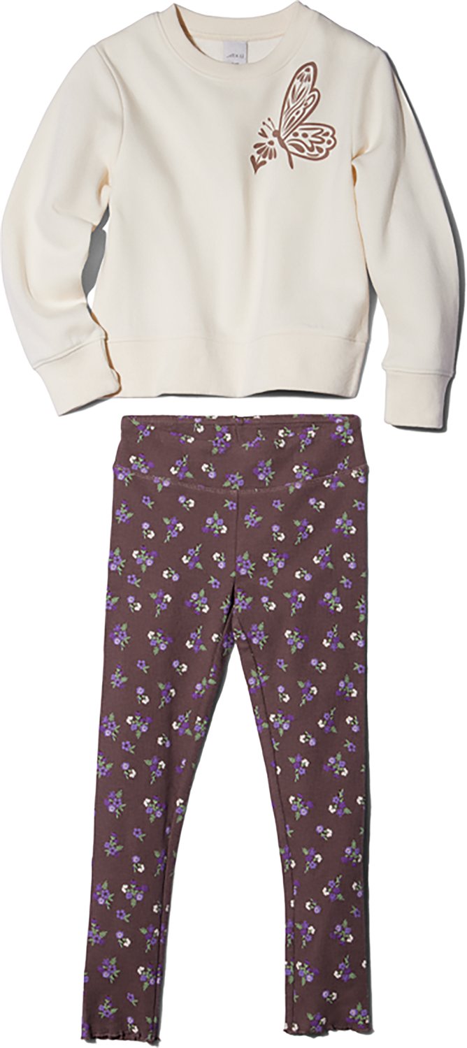 BCG Toddler Girls' Butterfly Fleece Crewneck Sweatshirt 2-Piece Set