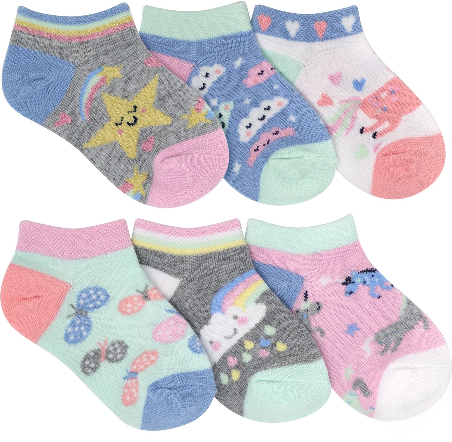 BCG Toddler Girls' Star Unicorn No-Show Socks 6-Pack