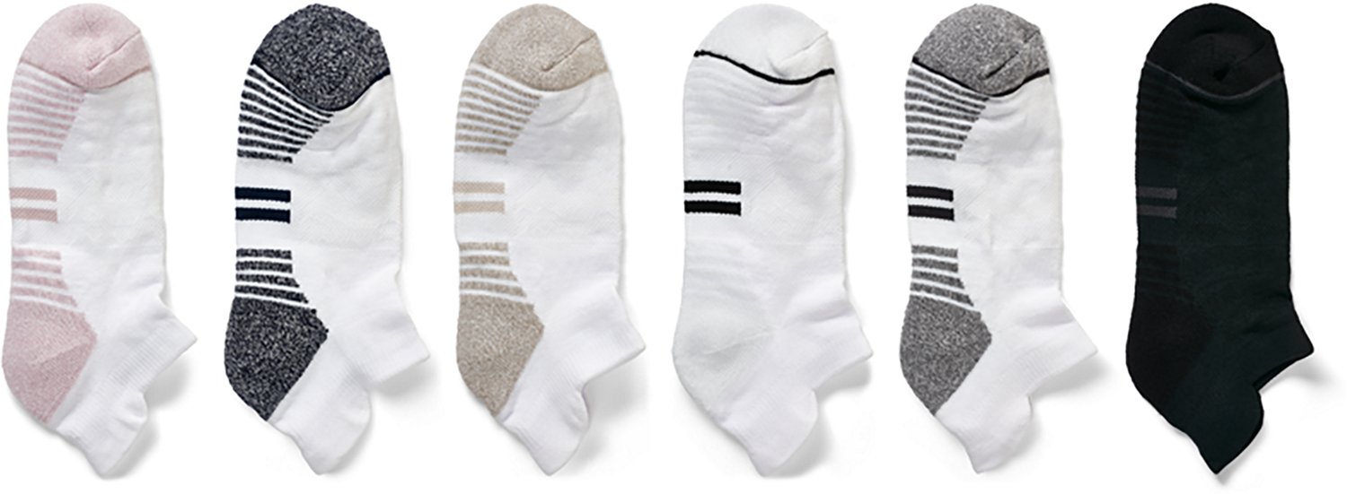 Elevate your comfort with the BCG Women's Anti-Friction Abstract Tab No Show Socks 6-Pack. The nylon blend provides a comfortable feel, while the abstract designs add a stylish look. The tabs allow for easy on and offer a secure fit.
