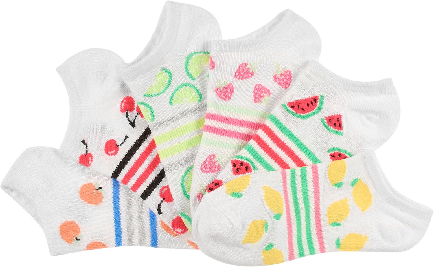 Have fun your own way with the BCG Women’s Assorted Fruit No-Show Socks 6-Pack. The polyester blend provides a comfortable feel, while the unique designs create a memorable look.