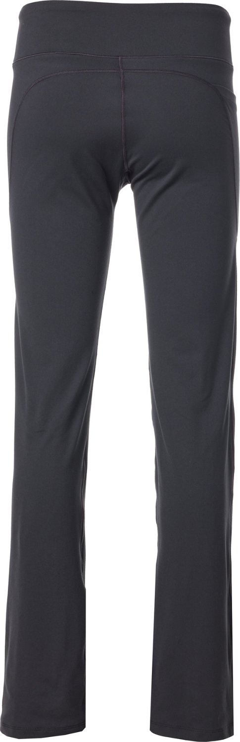 Take on the day in comfort and style whenever you sport the BCG Women's Flare Leg Pants. The 100% polyester melange jersey knit fabric offers a soft, breathable feel. The elastic waistband delivers a secure fit. The moisture wicking technology helps keep you dry and comfortable, while the flare leg design allows for mobility and adds a trendy appearance to your look.