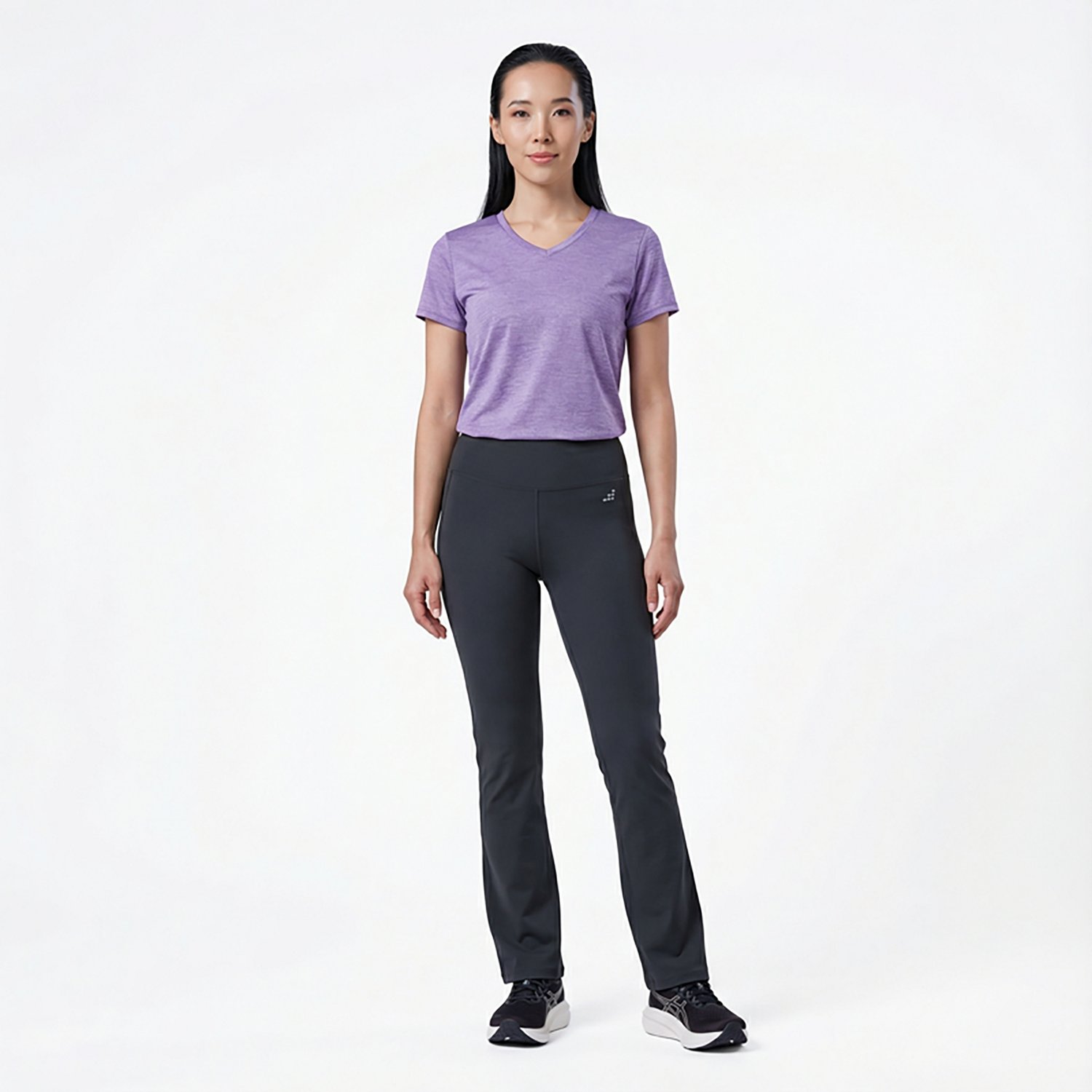 Take on the day in comfort and style whenever you sport the BCG Women's Flare Leg Pants. The 100% polyester melange jersey knit fabric offers a soft, breathable feel. The elastic waistband delivers a secure fit. The moisture wicking technology helps keep you dry and comfortable, while the flare leg design allows for mobility and adds a trendy appearance to your look.