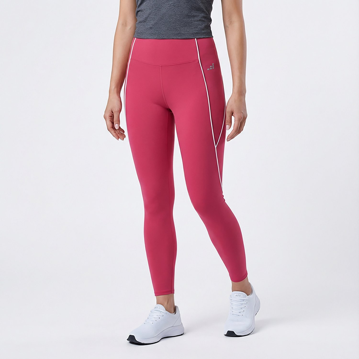 Run like the wind when you wear the BCG Women's HI Piped 7/8 Leggings. They are made of 77% recycled polyester and 23% spandex. The elastic waistband allows an adjustable fit, and their moisture-wicking technology keeps you dry. The side pocket stores small items like your phone and keys.