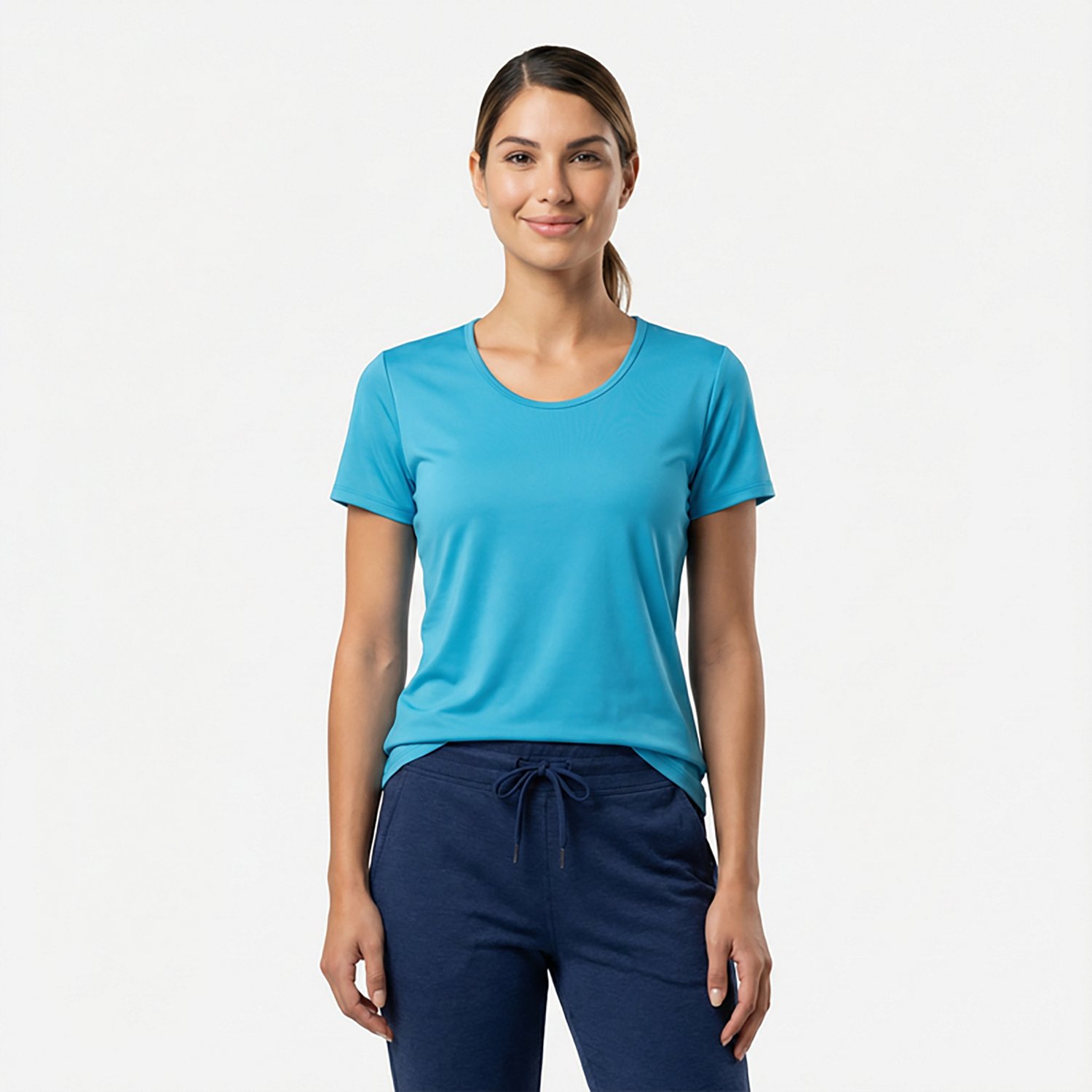 Chill out with the BCG Women's Mesh Back T-shirt. The polyester and spandex material provides a comfortable feel, while the mesh back promotes breathability.