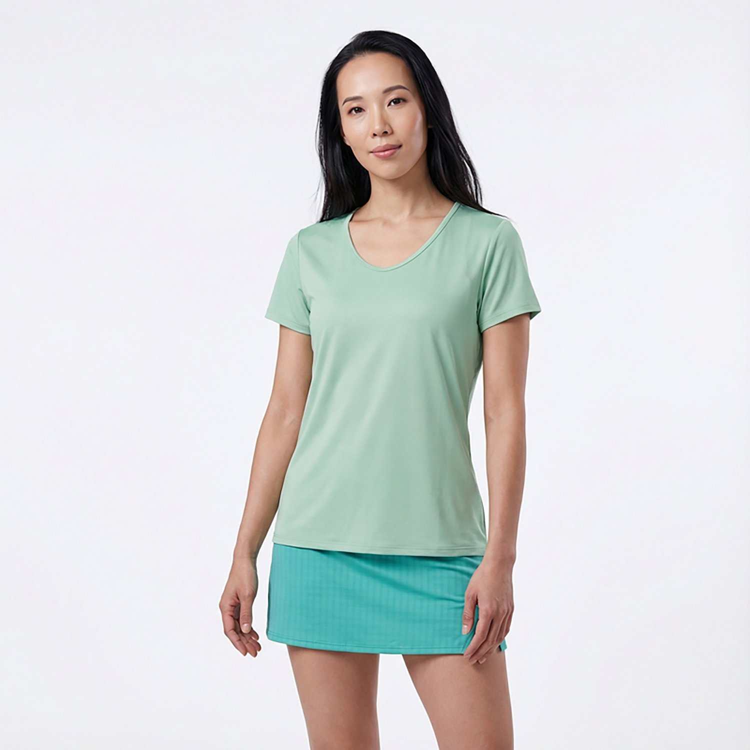 Chill out with the BCG Women's Mesh Back T-shirt. The polyester and spandex material provides a comfortable feel, while the mesh back promotes breathability.