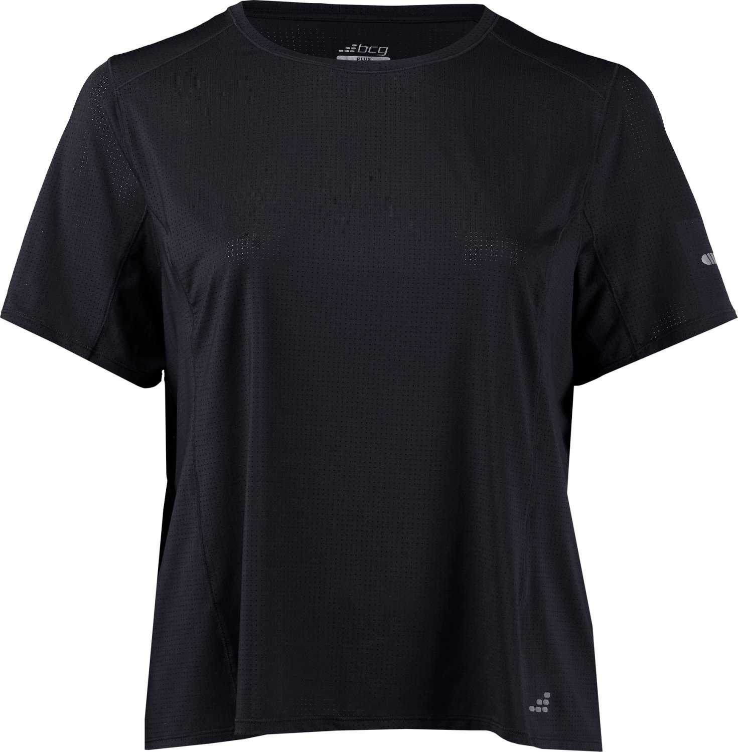 Stay cool while running with the BCG Women's Mesh Short Sleeve Plus Size Top. The polyester and spandex blend offers lightweight comfort, and the moisture-wicking fabric wicks away sweat to keep you dry and cool during long runs.