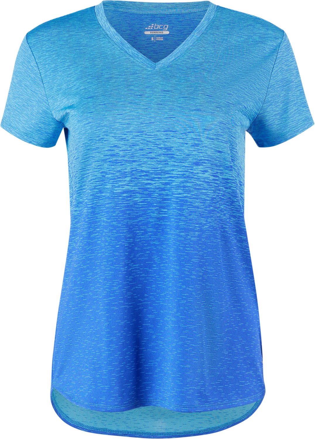 Work up a sweat in comfort wearing the BCG Women's Ombre V-neck Training T-shirt. The moisture-wicking technology helps gets rid of sweat, while the reflective details help you be seen in lowlight situations. The 100% polyester fabric provides soft and durability.