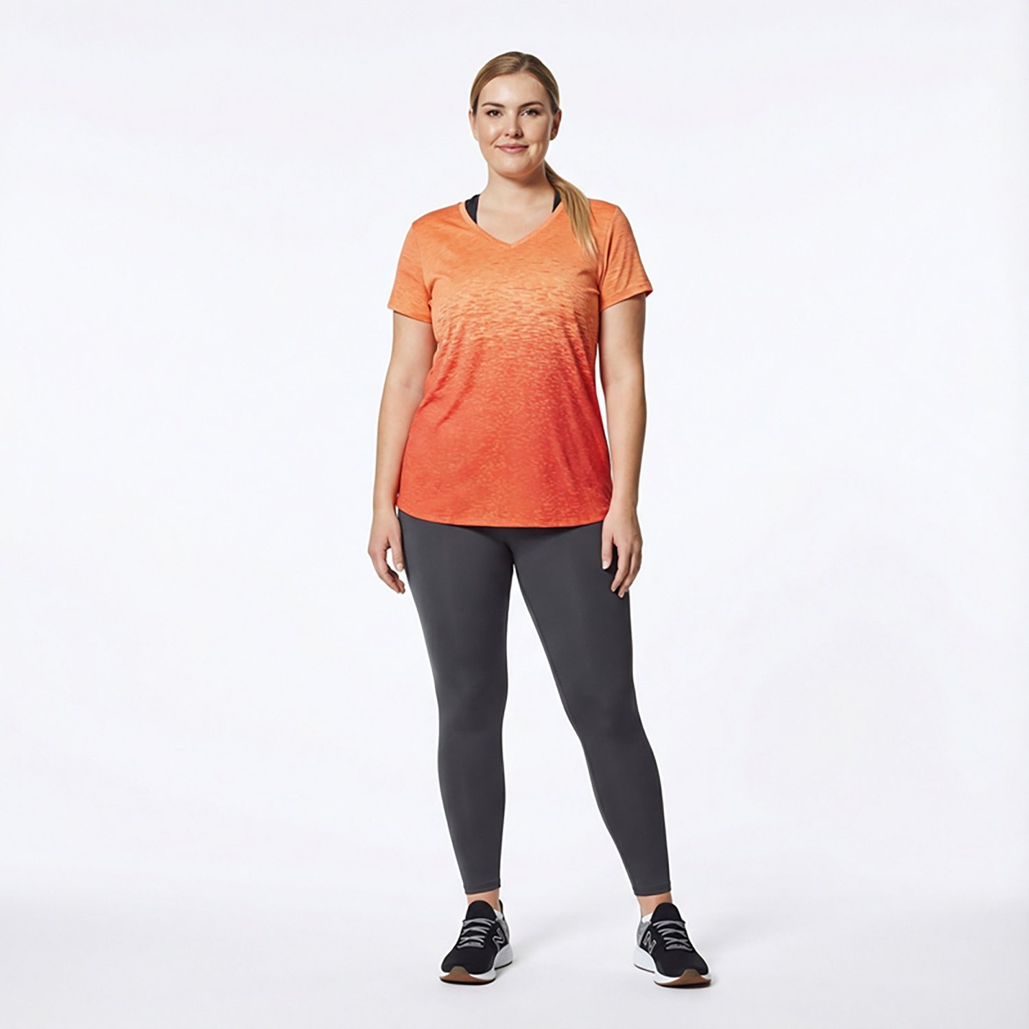 Work up a sweat in comfort wearing the BCG Women's Ombre V-neck Training T-shirt. The moisture-wicking technology helps gets rid of sweat, while the reflective details help you be seen in lowlight situations. The 100% polyester fabric provides soft and durability.