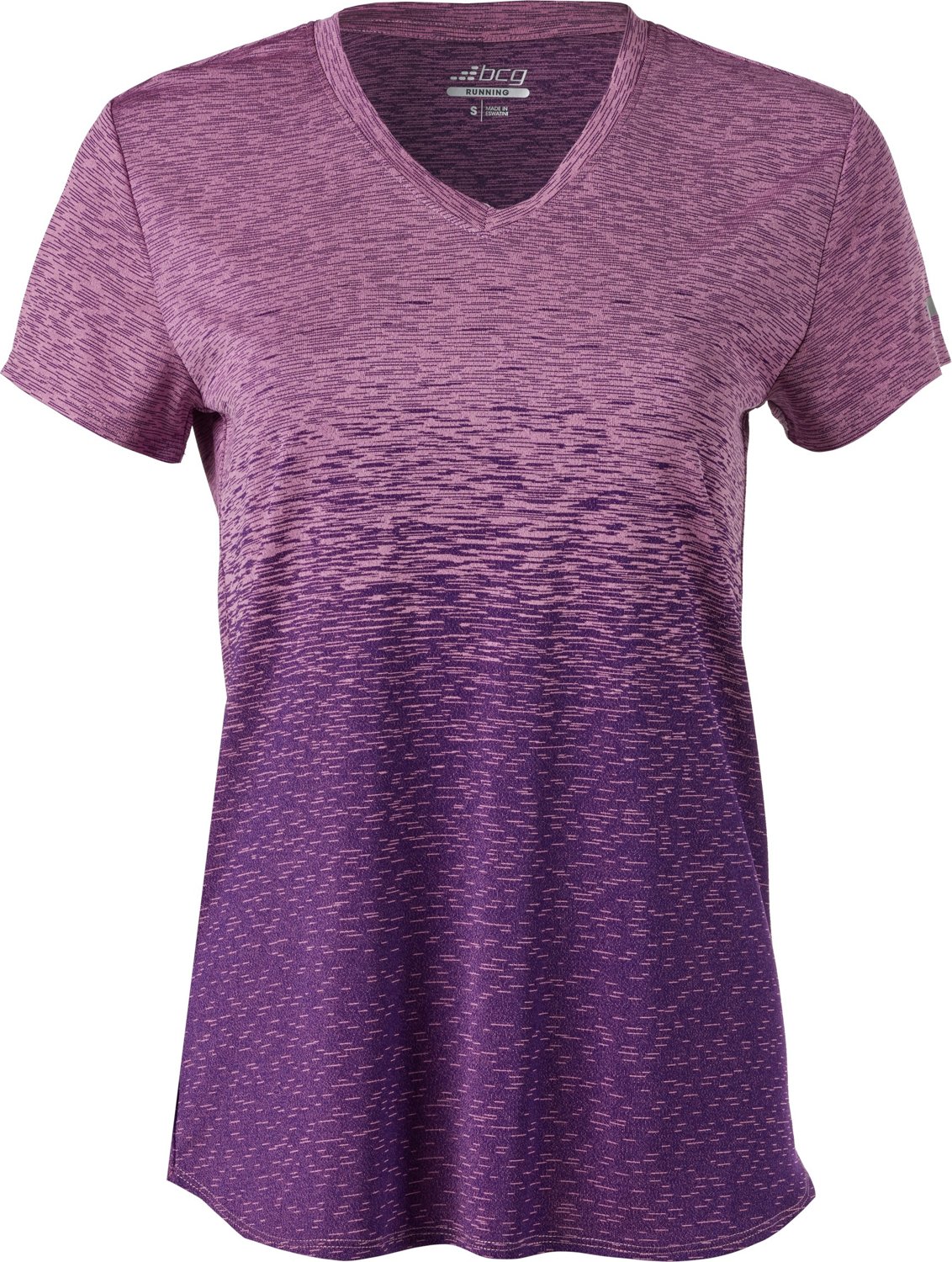Work up a sweat in comfort wearing the BCG Women's Ombre V-neck Training T-shirt. The moisture-wicking technology helps gets rid of sweat, while the reflective details help you be seen in lowlight situations. The 100% polyester fabric provides soft and durability.