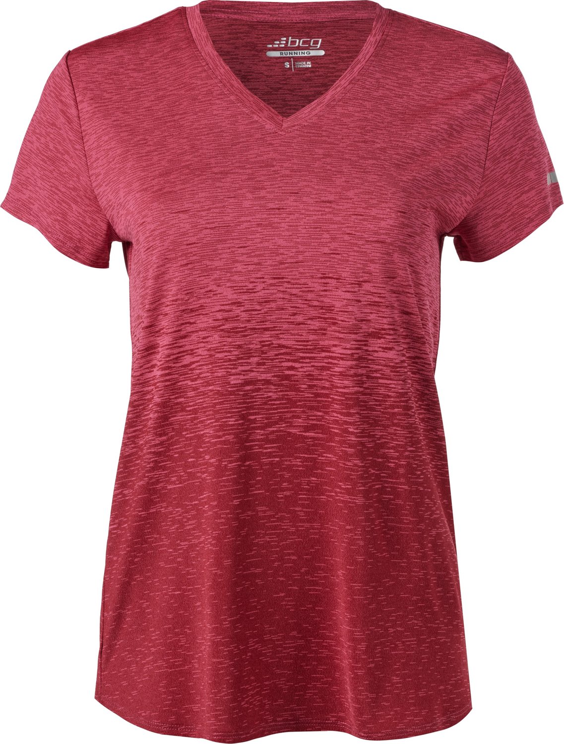 Work up a sweat in comfort wearing the BCG Women's Ombre V-neck Training T-shirt. The moisture-wicking technology helps gets rid of sweat, while the reflective details help you be seen in lowlight situations. The 100% polyester fabric provides soft and durability.