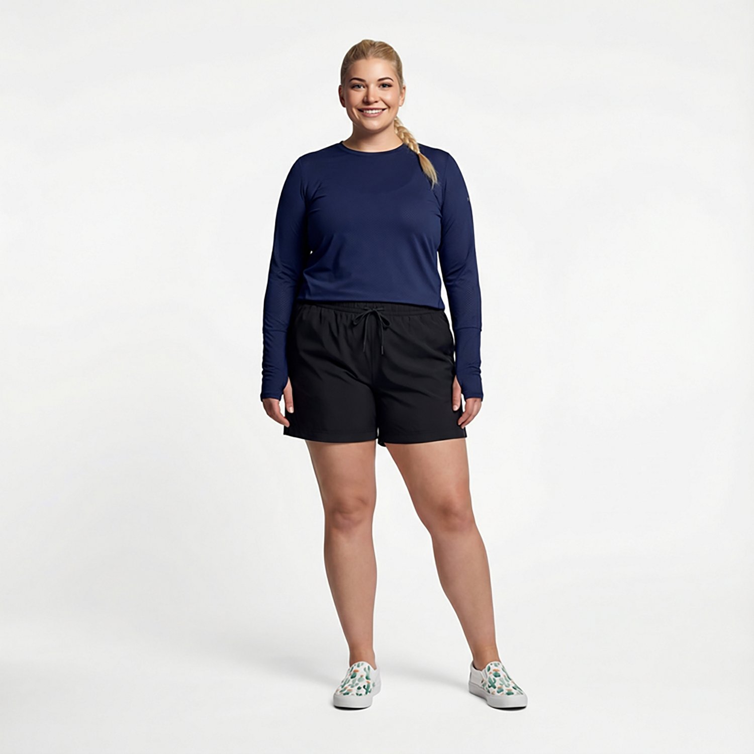Run like the wind when you wear the BCG Women's Plus Taped Woven Shorts 4.5 in. They are made of 100% polyester. The elastic waistband is equipped with an adjustable drawcord, and their 4.5-inch inseam shows off more of your legs. The relaxed fit allows you stay comfortable.