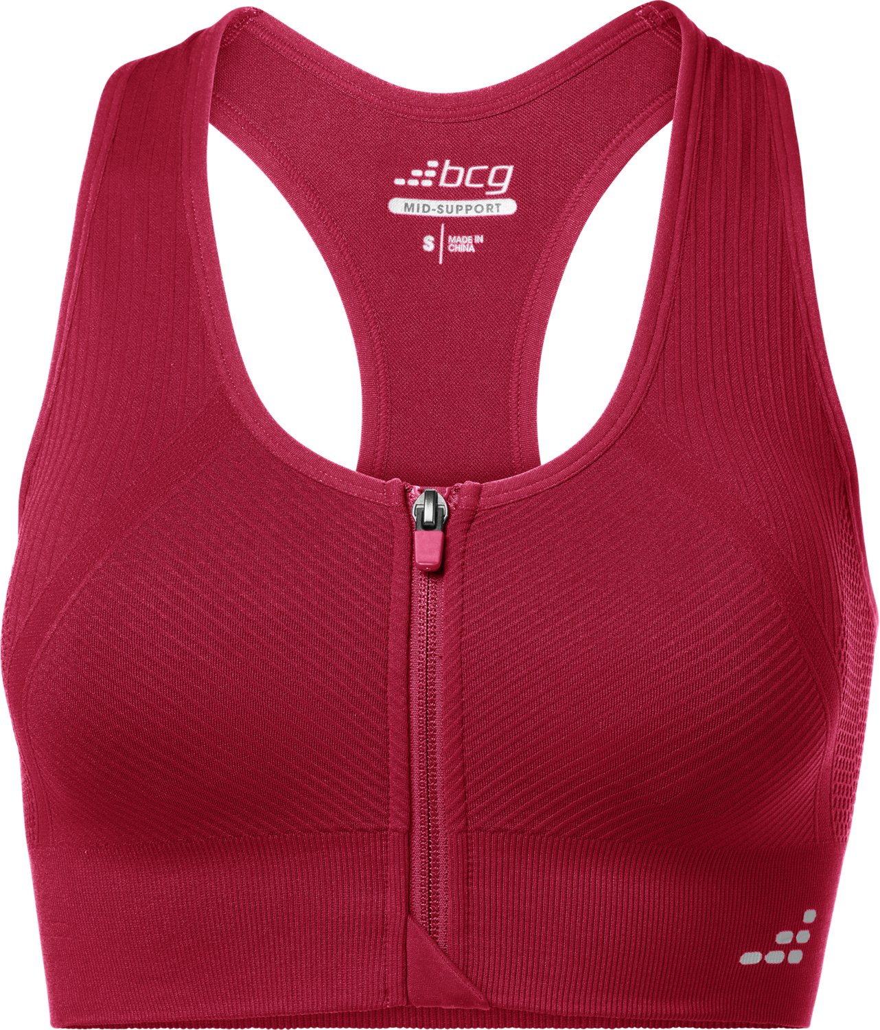 Comfort and style meet your workout whenever you wear the BCG Women's Seamless Zip Front Mid Impact Sports Bra. The nylon, polyester and spandex triblend construction delivers an ultrasoft, flexible fit and features moisture-wicking technology to keep you dry and comfortable. The zippered front closure blends secure, support with a sleek, sporty appearance.