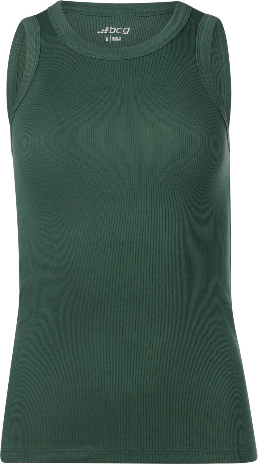Enhance your comfort by wearing the BCG Women's Sign High Neck Solid Rib Tank Top. The cotton blend fabric has a ribbed design, and the shirt has a high crew neck.