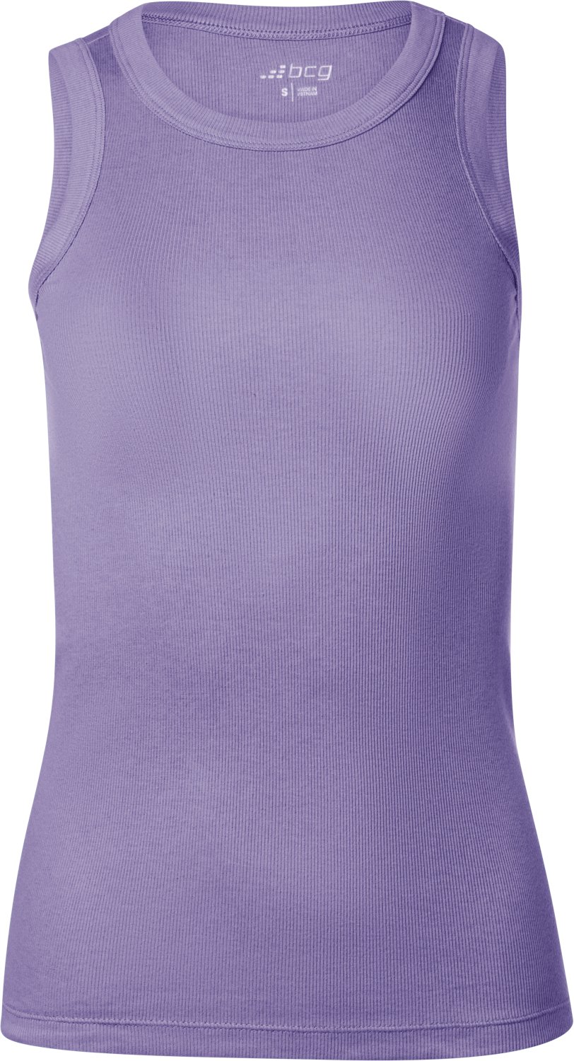 Enhance your comfort by wearing the BCG Women's Sign High Neck Solid Rib Tank Top. The cotton blend fabric has a ribbed design, and the shirt has a high crew neck.