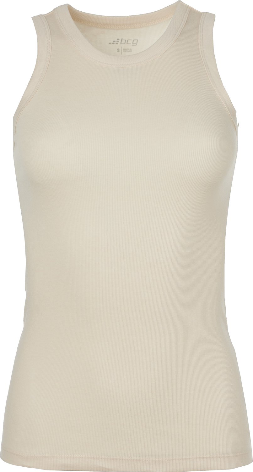 Enhance your comfort by wearing the BCG Women's Sign High Neck Solid Rib Tank Top. The cotton blend fabric has a ribbed design, and the shirt has a high crew neck.