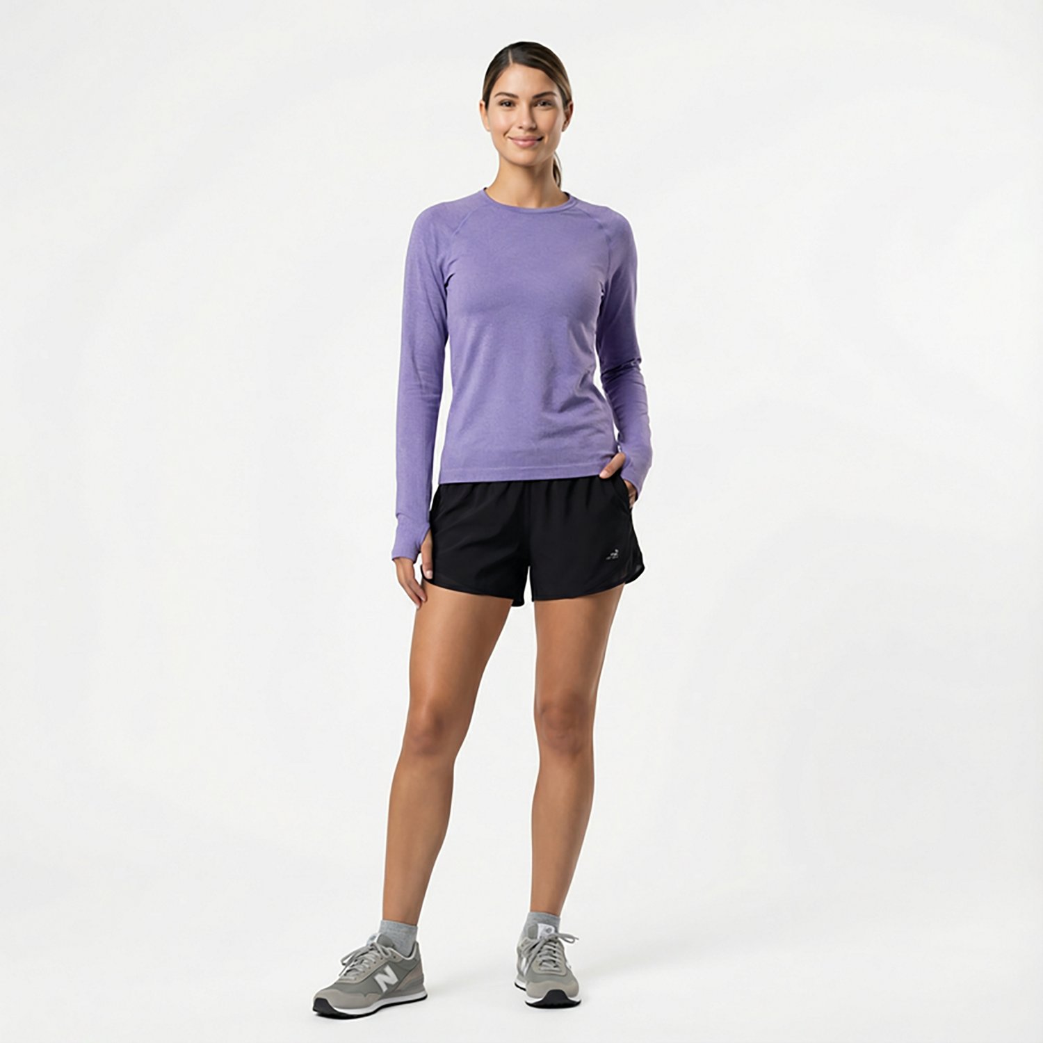 Crush your workout with the BCG Women's SMLS Rib Long Sleeve T-shirt. The nylon and polyester material provides a comfortable feel, while the moisture wicking technology helps keep you cool and dry. The reflective design promotes visibility.