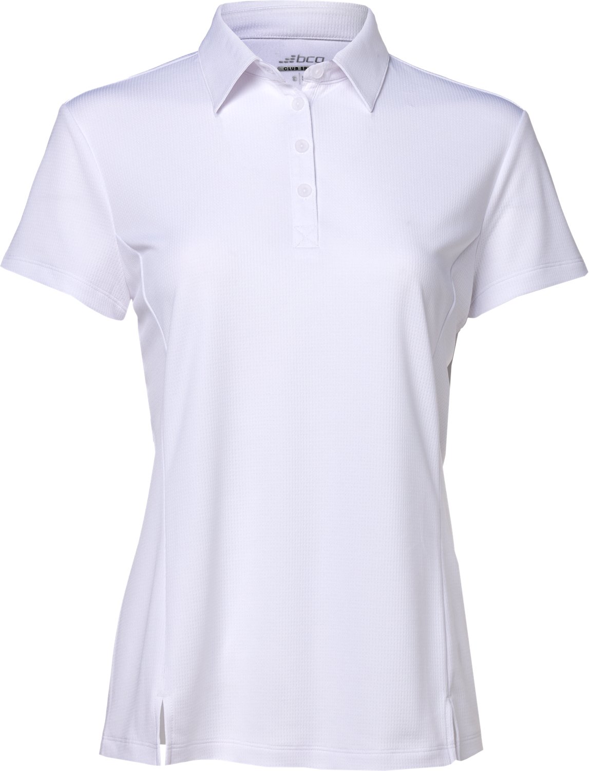 Look your best in the BCG Women's Tennis Button Short Sleeve Polo Shirt. It is made of 100% recycled polyester. The moisture-wicking technology keeps you dry, and its UPF 50 protectant repels the sun's harsh rays. The ribbed collar finishes off the design.