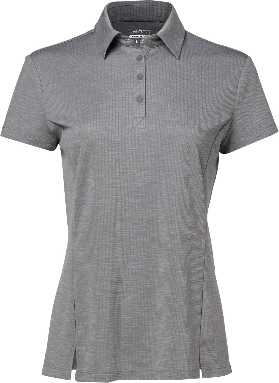 Look your best in the BCG Women's Tennis Button Short Sleeve Polo Shirt. It is made of 100% recycled polyester. The moisture-wicking technology keeps you dry, and its UPF 50 protectant repels the sun's harsh rays. The ribbed collar finishes off the design.
