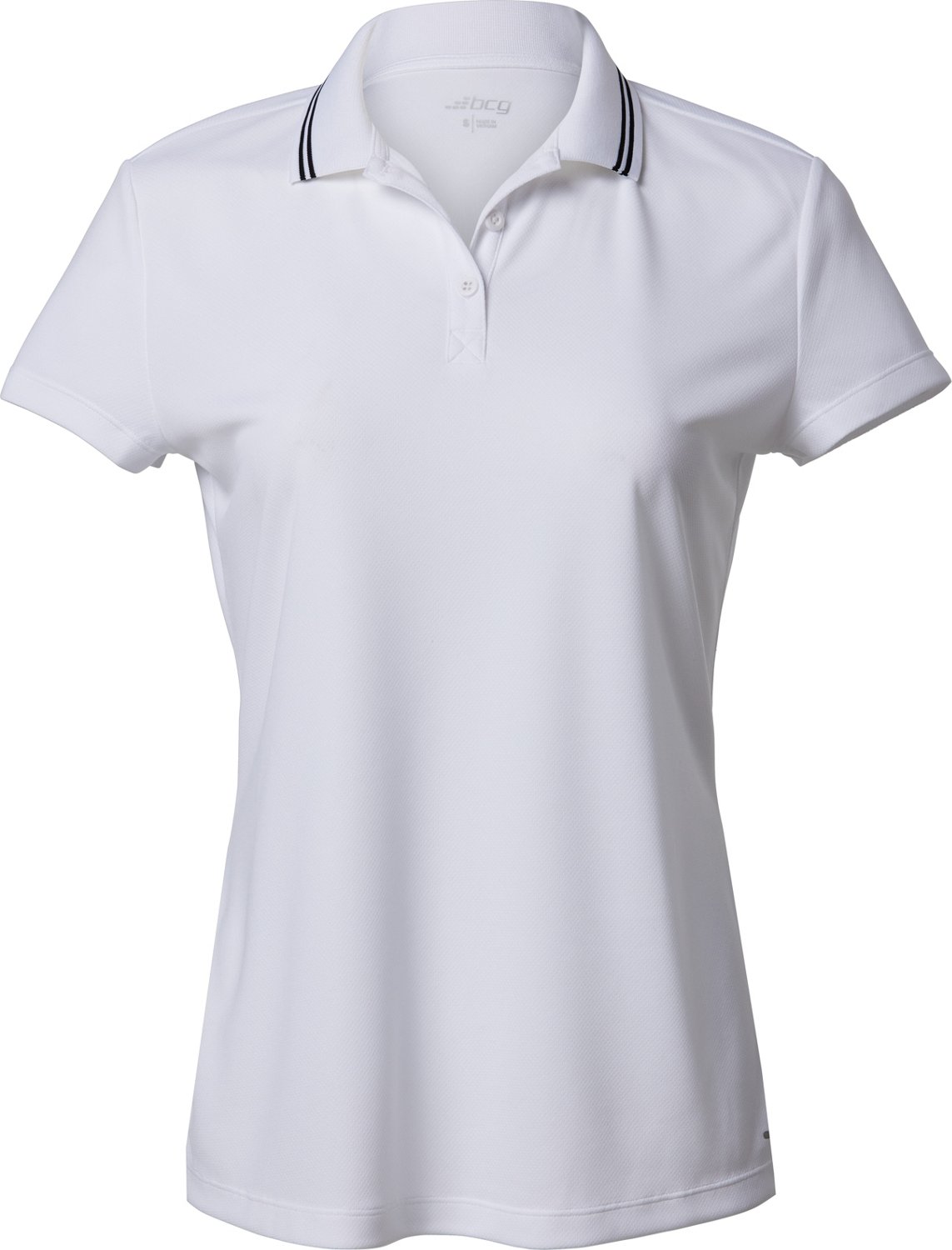 Focus on the court in the BCG Women's Tennis Stripe Polo Shirt. It's made from 100% polyester for long-lasting durability and a striped pattern for a stylish touch. It also has moisture wicking technology that keeps you comfortable and dry all game long.