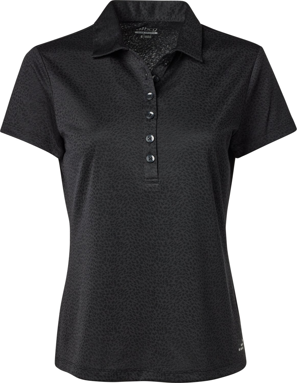 Take your place on the court and serve with the BCG Women's Tennis Textured Polo Shirt. The polyester double jacquard fabric provides a comfortable feel, while the UPF protectant shields against harmful UV rays. Built-in moisture wicking technology helps keep you cool and dry.