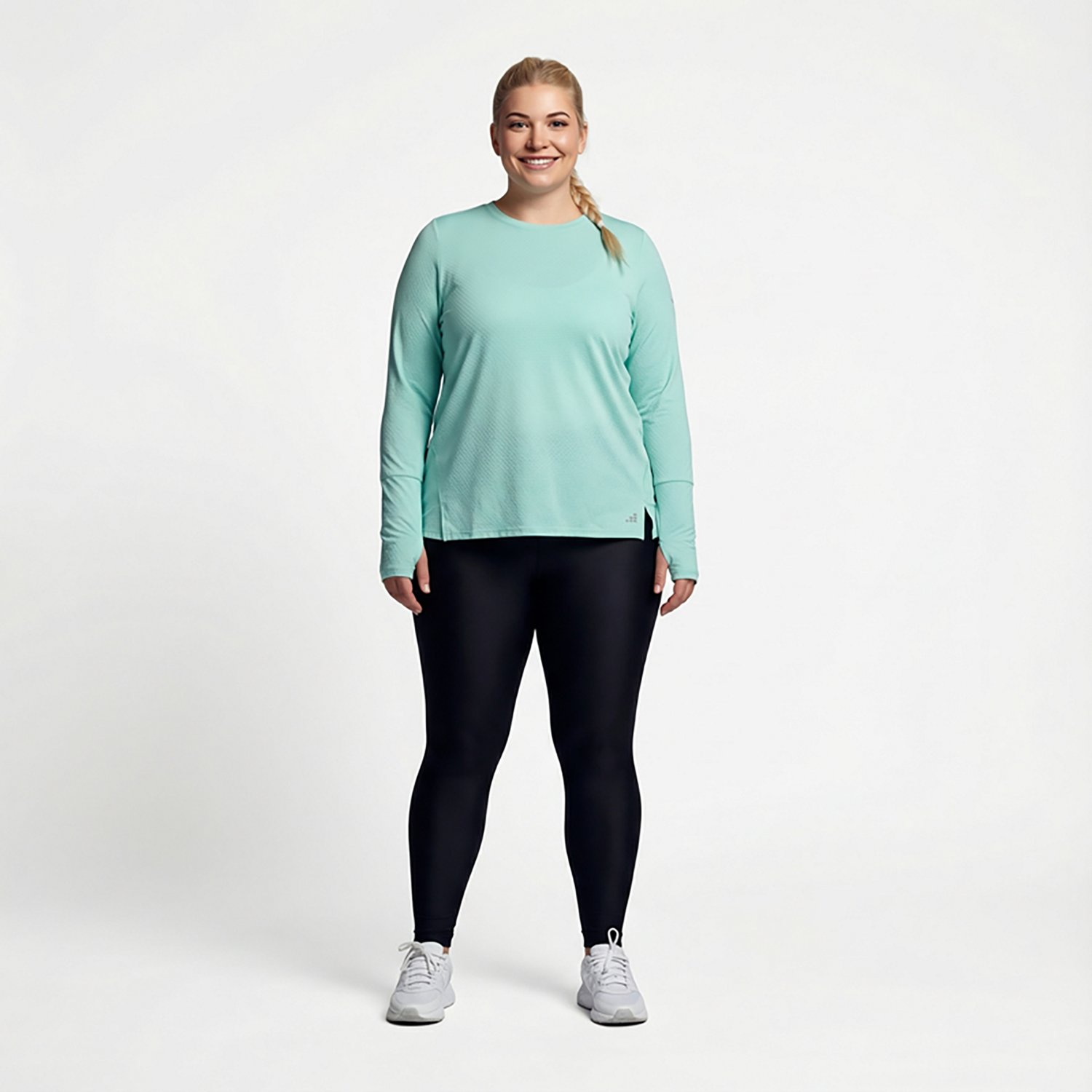 Work up a sweat with the BCG Women's Texture Plus Size Long Sleeve T-shirt. The polyester and spandex jacquard mesh fabric provides a comfortable feel, while the moisture wicking technology helps keep you cool and dry.
