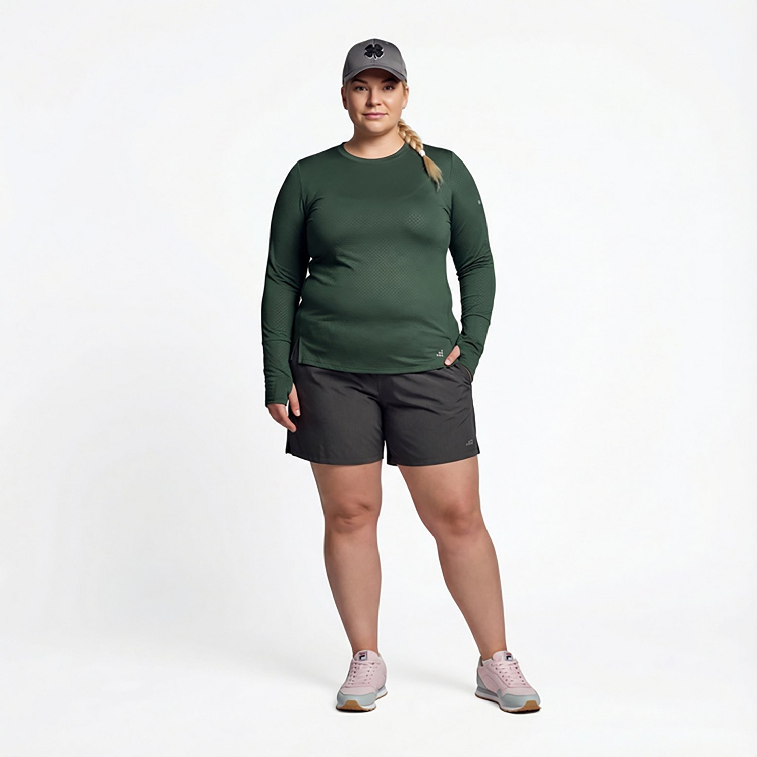 Work up a sweat with the BCG Women's Texture Plus Size Long Sleeve T-shirt. The polyester and spandex jacquard mesh fabric provides a comfortable feel, while the moisture wicking technology helps keep you cool and dry.