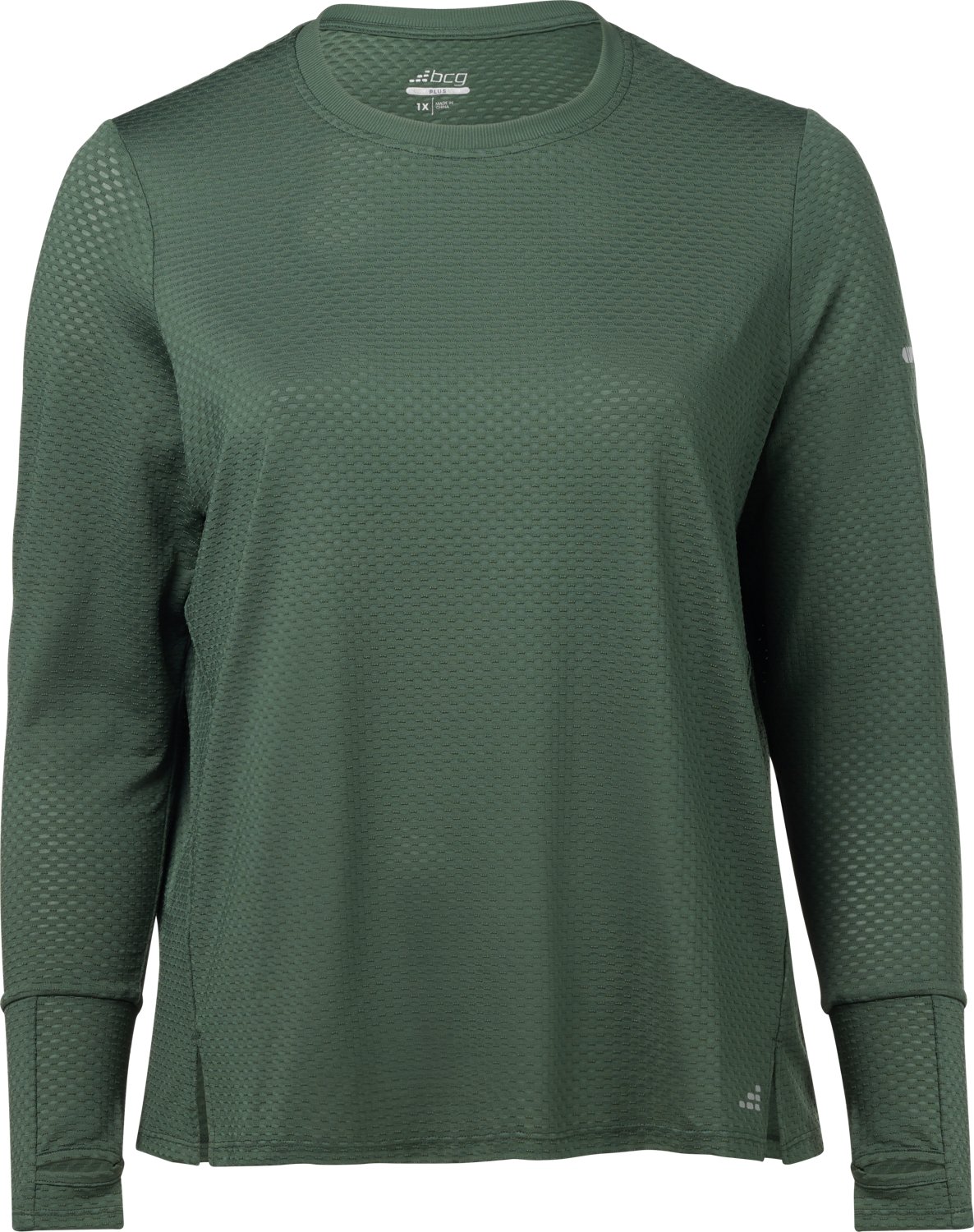 Work up a sweat with the BCG Women's Texture Plus Size Long Sleeve T-shirt. The polyester and spandex jacquard mesh fabric provides a comfortable feel, while the moisture wicking technology helps keep you cool and dry.