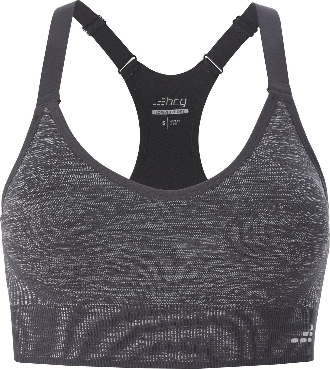 Stay supported while you sweat with the BCG Women's Training Low Support Cami Sports Bra. This sports bra is crafted from 55% nylon, 40% polyester and 5% spandex for a comfortable yet durable wear. The moisture-wicking technology wicks sweat to keep you dry, while the seamless body and racerback design allow for a sleek look.