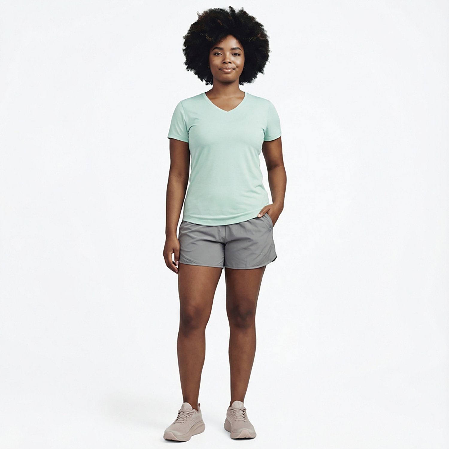 Slip on the BCG Women's Turbo Melange V-neck T-shirt and take on the day in style. The 100% recycled polyester construction withstands wear and tear, and the melange pattern highlights an eye-catching appearance. The moisture-wicking technology helps you stay feeling dry and cool in the heat.