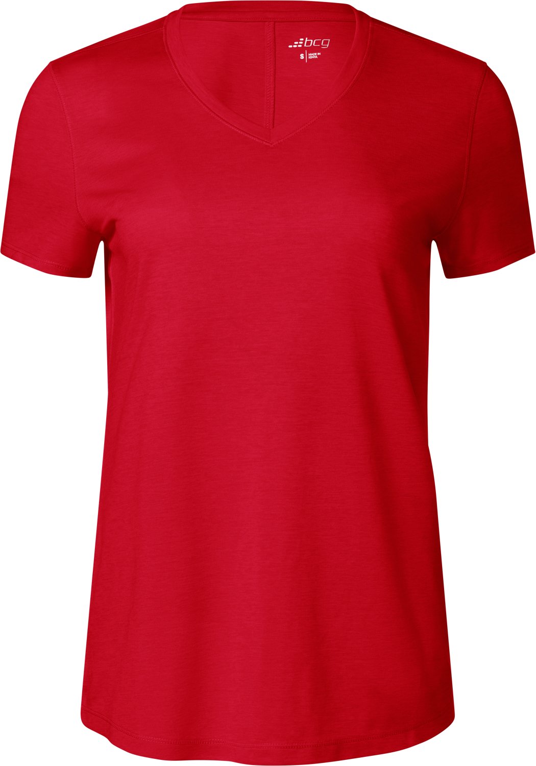 Slip on the BCG Women's Turbo Melange V-neck T-shirt and take on the day in style. The 100% recycled polyester construction withstands wear and tear, and the melange pattern highlights an eye-catching appearance. The moisture-wicking technology helps you stay feeling dry and cool in the heat.